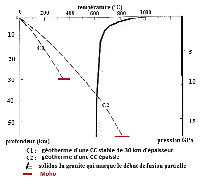 À pression ambiante, le granite commence à fondre vers 1000 °C. La température de fusion diminue quand la pression augmente. Ce comportement étrange s’explique par la présence d’eau. Le granite est une roche hydratée. L’eau est contenue dans certains minéraux, comme la biotite (mica noir). Elle est libérée lors de la fusion sous forme de bulles de vapeur d’eau dans le magma.