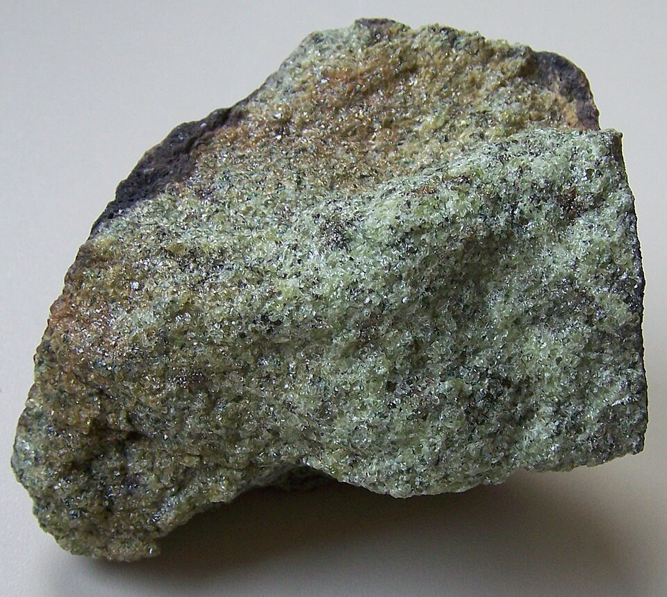 Sous les continents, le manteau commence normalement entre 30 et 40 km de profondeur, en moyenne à 36 km. Dans les zones où la croûte est amincie, il peut commencer vers 20 km de profondeur. Puisque le forage le plus profond n’a pas dépassé 12 km, il n’est pas possible de l’atteindre de cette manière. Heureusement, les volcans rejettent de nombreuses pierres provenant du manteau. Ce sont des péridotites, reconnaissables à leur couleur vert olive quand elles ne sont pas altérées. Elles contiennent plus de 40 % d’olivine, un minéral utilisé en joaillerie sous le nom de péridot. Les autres minéraux appartiennent à la famille des pyroxènes. On distingue, selon leur structure cristalline, les orthopyroxènes (enstatite) et les clinopyroxènes (diopside, augite, hédenbergite…). La jadéite, simplement appelée jade dans le commerce, est un clinopyroxène. Je ne donne pas les formules chimiques de ces minéraux. Ce qu’il faut savoir, c’est qu’ils sont tous des silicates, c’est-à-dire des oxydes de silicium, avec du magnésium, du fer, du calcium, etc. Sachant cela, les péridotites se divisent en trois catégories :
