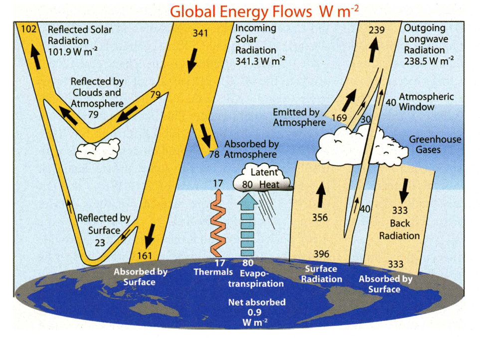 J. T. Kiehl and Kevin E. Trenberth, Earth’s Annual Global Mean Energy Budget, Bulletin of the American Meteorological Society, 01 February 1997.